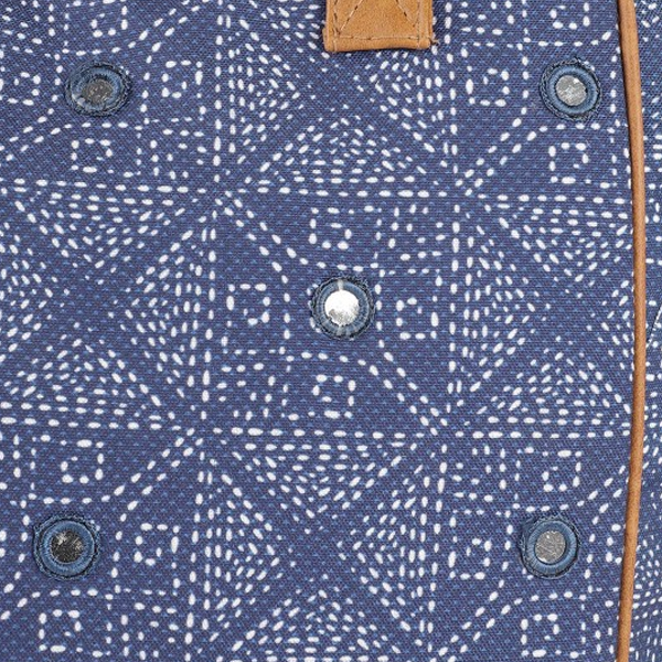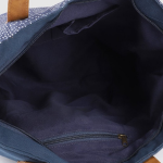 Navy blue geometric printed shoulder bag with mirror work, has 1 main compartment, a zip closure, 3 inner pockets